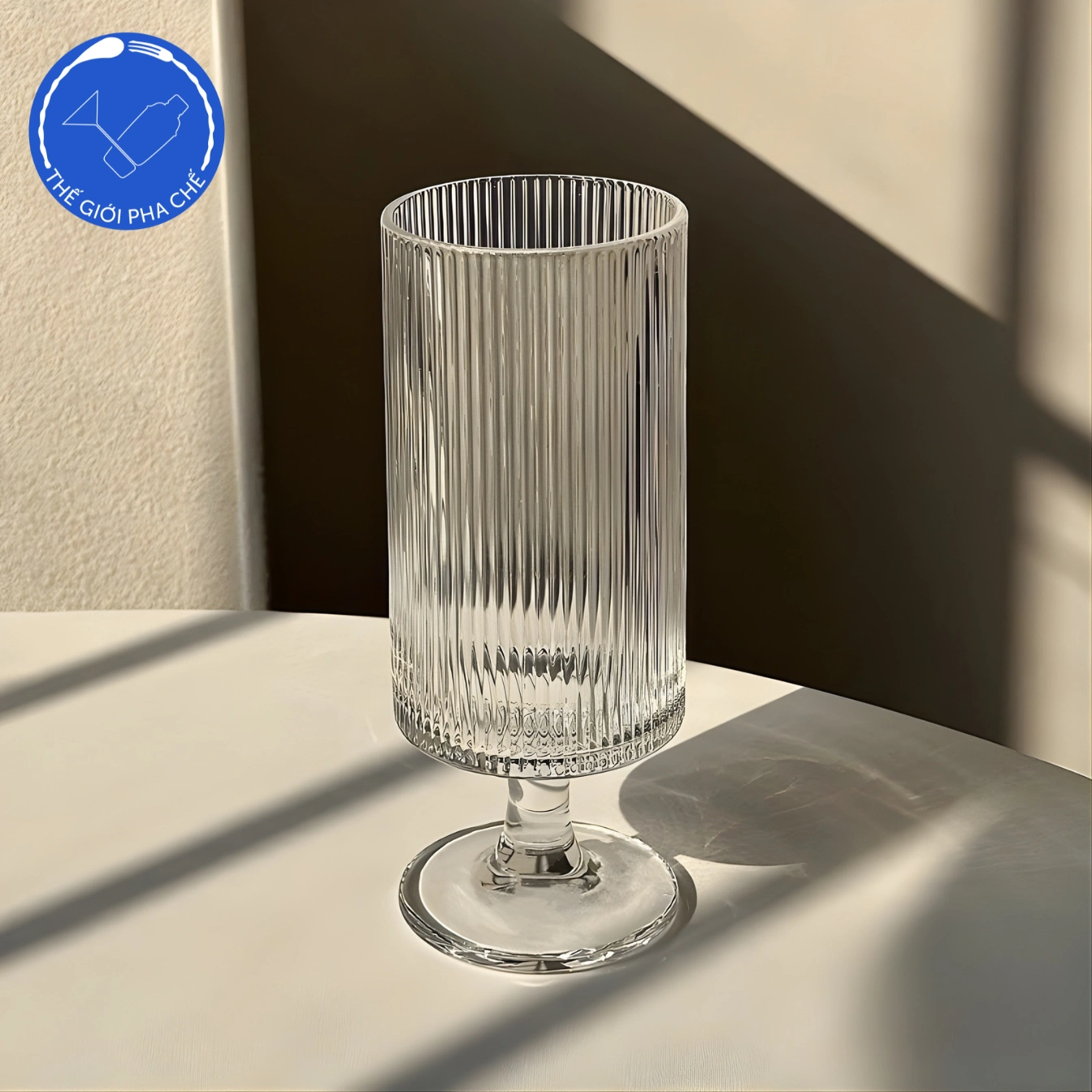 Ly thủy tinh kẻ sọc có chân 310ml